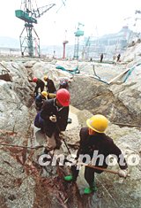 圖:三峽大壩主體工程進(jìn)行最后一塊清基澆面施工