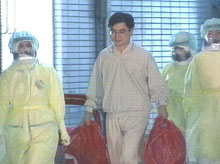 中新網(wǎng)12月30日電 據(jù)臺(tái)灣媒體報(bào)道,臺(tái)灣今年冬季首位感染SARS的詹姓中校,今天(30日)凌晨零時(shí)五十分許,在兩名身著隔離衣的護(hù)士陪同下,悄悄步出臺(tái)北和平醫(yī)院,隨后立即由家人駕車接離,結(jié)束其十三天的醫(yī)療。