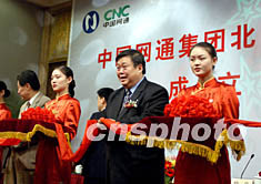 一月八日,中國網(wǎng)通集團北方通信有限公司正式掛牌運作,網(wǎng)通集團總經(jīng)理兼網(wǎng)通北方董事長張春江在北京為公司成立剪彩。網(wǎng)通南方通信有限公司將于近期在上海成立。中新社記者:張宇