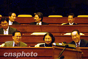 香港政務(wù)司長曾蔭權(quán)、律政司長梁愛詩、財(cái)政司長唐英年,1月8日出席立法會旁聽特首董建華答復(fù)議員就施政報(bào)告所提出的質(zhì)詢。作者:洪少葵