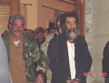 上述照片看似是由美國軍方內(nèi)部或是與美軍關(guān)系密切的人在美軍抓到薩達(dá)姆時拍攝的。其中另一張照片顯示,當(dāng)薩達(dá)姆被帶往他在巴格達(dá)的一座皇宮、現(xiàn)為美軍總部時數(shù)十名軍方人員圍在薩達(dá)姆身邊。