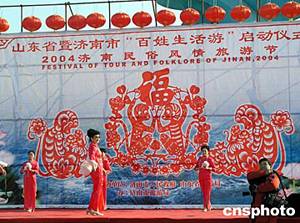 中國農(nóng)歷大年初一上午,山東省濟南市政府與省旅游局聯(lián)合在省城泉城廣場舉辦“二00四濟南春節(jié)民俗風情旅游節(jié)”。開幕式上,來自各地的藝術家為廣大市民和海內(nèi)外游客表演了民俗藝術和歌舞等精彩的節(jié)目。作者:胡洪林