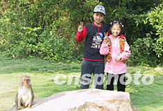 今年春節(jié)海南陵水境內(nèi)的南灣猴島成為小朋友們最喜歡去的游樂公園。據(jù)統(tǒng)計(jì)猴島近日每天有近萬人前去游覽。圖為小朋友在公園里小心謹(jǐn)慎地與野生猴子合影。作者:王辛莉