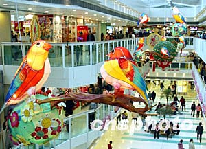 盡管禽流感襲擊亞洲諸多城市,但是香港一些商場(chǎng)依然用繽紛璀璨的禽鳥(niǎo)燈飾來(lái)裝飾即將來(lái)臨的元宵佳節(jié)。作者:潘索菲