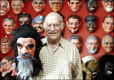 里約熱內盧一家商店老板展示為狂歡節(jié)準備的薩達姆面具。