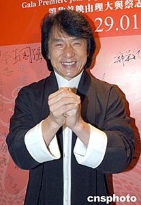 成龍?jiān)陬C授儀式前先向大家拜年。作者:鄧慶樂