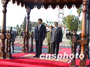 三日下午,胡錦濤抵達(dá)阿爾及爾,開始他此次歐非四國之行的最后一站。傍晚,當(dāng)胡錦濤來到位于阿爾及爾市郊穆拉迪高地的總統(tǒng)府時,總統(tǒng)府儀仗隊持槍敬禮,軍樂隊奏起歡迎曲。在胡錦濤檢閱了總統(tǒng)府儀仗隊后,等候在門前的布特弗利卡迎上前去,與胡錦濤熱烈握手歡迎。這是自去年法國埃維昂南北領(lǐng)導(dǎo)人非正式對話會后,胡錦濤同布特弗利卡的第二次會晤。