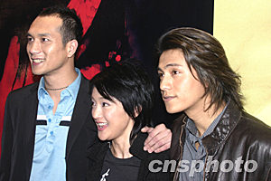 2月5日下午,電影《戀愛中的寶貝》在北京舉行首映新聞發(fā)布會。這部影片融合了中國電影第五代最前衛(wèi)的藝術(shù)思考與風(fēng)格創(chuàng)新。正式放映之前就獲得包括威尼斯電影節(jié)、柏林電影節(jié)、墨爾本電影節(jié)、意大利遠東電影節(jié)、香港電影節(jié)等各大電影節(jié)的邀請。被稱為中國內(nèi)地2004年最值得期待的第一部國產(chǎn)大片。圖為影片的三名主要演員:黃覺、周迅、陳坤(從左到右)。作者:高遠