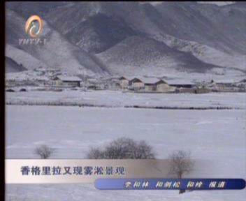 報(bào)道說,由于香格里拉早晚空氣的溫度差異較大,而形成了這種特有的霧淞現(xiàn)象。而香格里拉海拔較高,空氣流動速度快,即使有太陽的時候,溫度仍然可以保持在一個特定范圍之內(nèi),因而對霧淞的較長時間存在創(chuàng)造了必要的溫度條件。