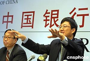 中國銀行行長經(jīng)濟顧問朱民(右)十六日在中行新聞發(fā)布會上表示:中國銀行將在一年內(nèi)將不良資產(chǎn)降到國際一般商業(yè)銀行水平,采用逐筆檢銷不良資產(chǎn)、建立新型戰(zhàn)略體制、強化內(nèi)控體系和風險管理和人力資源改革四大步驟全面推行股份制改革。中新社記者:廖文靜