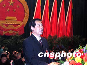 2月19日上午,張寶順在山西省十屆人大二次會議上,當(dāng)選為山西省省長。圖為張寶順在二月十二日舉行的山西省十屆人大二次會議上作《政府工作報告》。作者:張恩