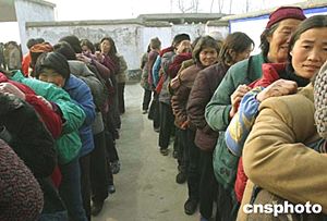 在河南省駐馬店市上蔡縣蘆崗鄉(xiāng)文樓村衛(wèi)生所,村民們排隊(duì)等候領(lǐng)取免費(fèi)藥品。文樓村是一個(gè)艾滋病疫情高發(fā)村,三千二百多村民中有數(shù)百人染上愛(ài)滋病,F(xiàn)在村民凡出現(xiàn)頭疼、拉肚子的癥狀,都能在衛(wèi)生所領(lǐng)取免費(fèi)藥物。作者:慎重