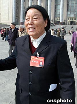 連續(xù)當選一至十屆全國人大代表的申紀蘭,四日出席十屆全國人大二次會議預備會。中新社記者:張宇