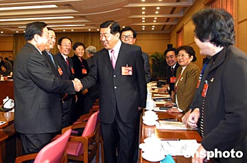 全國(guó)政協(xié)主席賈慶林今天來到他所在的北京代表團(tuán),與代表們共同審議溫家寶總理所作的《政府工作報(bào)告》。