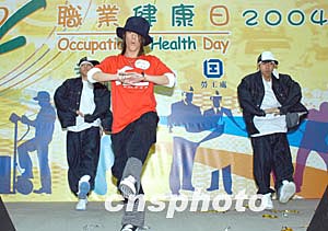 歌星麥浚龍3月6日在香港出席由職安局及勞工處舉辦之《職安健康日2004》開幕典禮活動(dòng),麥浚龍為大會載歌載舞獻(xiàn)唱其新歌「真功夫」。作者:鄧慶樂