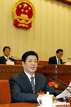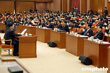 大會(huì)主席團(tuán)常務(wù)主席吳邦國(guó)主持會(huì)議。