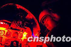 三月中旬,擔(dān)負(fù)空軍最新噴氣式教練機(jī)首訓(xùn)任務(wù)的濟(jì)空某飛院,組織該機(jī)新學(xué)員進(jìn)行夜航訓(xùn)練。圖為夜幕下飛行員在五彩斑斕的座倉里架駛戰(zhàn)鷹。作者:崔文斌