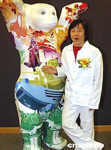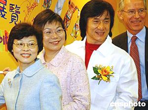 “熊熊愛心連世界”展覽三月二十六日在香港舉行記者會,該展將于五月至六月在維多利亞公園展出,是次活動旨在宣揚愛心、和平與團結(jié),同時推動公眾藝術(shù)。圖為香港民政事務總署署長陳甘美華、康樂及文化事務署署長王倩儀、明星成龍以及德國駐香港總領(lǐng)事海因裹希·威廉·博伊特在記者會上簽名。作者:錢興強