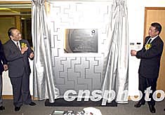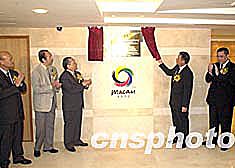 圖為澳門特區(qū)行政長(zhǎng)官何厚鏵為「第四屆東亞運(yùn)動(dòng)會(huì)澳門組委會(huì)總部」新大樓揭牌。