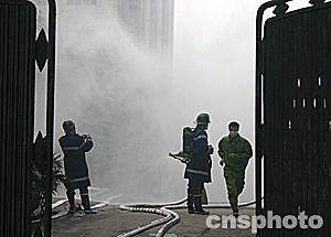 今天下午,重慶市對天原化工總廠殘存有液態(tài)氯的三個(gè)貯氣罐進(jìn)行了人工引爆,三個(gè)貯氣罐目前已被摧毀,險(xiǎn)情被排除。十五日晚重慶天原化工總廠發(fā)生氯氣泄漏爆炸事件,十五萬群眾被疏散。圖為引爆前消防員噴水降低化工總廠前空氣中的氯氣濃度。作者:鄒輝