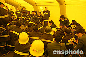 今天下午,重慶市對天原化工總廠殘存有液態(tài)氯的三個(gè)貯氣罐進(jìn)行了人工引爆,三個(gè)貯氣罐目前已被摧毀,險(xiǎn)情被排除。十五日晚重慶天原化工總廠發(fā)生氯氣泄漏爆炸事件,十五萬群眾被疏散。圖為消防官兵在洗消帳篷內(nèi)布署工作。作者:鄒輝
