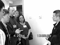 4月17日上午10點(diǎn),美國聯(lián)邦調(diào)查局駐華聯(lián)絡(luò)官威廉、美國移民局駐華事務(wù)官瞿建玲來到東城區(qū)看守所,參觀、了解關(guān)押情況。看到余振東和其他犯罪嫌疑人一樣坐在地上,威廉叫他站起來走一走,并和他有這樣一段對話: