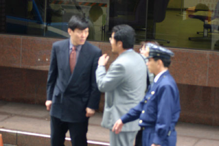 中國(guó)駐大阪總領(lǐng)館領(lǐng)事部負(fù)責(zé)人趙大維(左一)在現(xiàn)場(chǎng)與日本警方進(jìn)行交涉。(《關(guān)西華文時(shí)報(bào)》叢中笑/春風(fēng)攝影報(bào)道)
