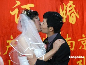 中新社南京四月二十四日電(記者 王國安)備受關(guān)注的成都變性人章琳今天與自己的意中人楊啟成在南京天時商貿(mào)中心舉行了訂婚儀式,并將于今年五月一日舉行婚禮;槎Y的司儀由南京知名主持人山佳擔任。