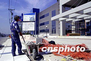 2004年雅典奧運會的各項設(shè)施工程加緊進(jìn)行,新聞中心在日前總算落成,但內(nèi)外裝修工程依然艱巨。作者:田地