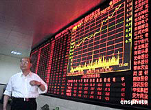 中國股市周四午后大幅上揚 兩市綜指雙雙收高3%
