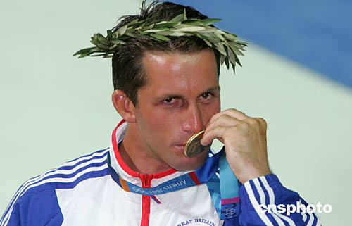 圖為英國運(yùn)動員本·安斯利(Ben Ainslie)和英國選手arah Webb, skipper Shirley Robertson,Sarah Ayton在奪得帆船芬蘭人級比賽和三人女子龍骨船-鷹鈴級帆船比賽冠軍后親吻金牌的場面。