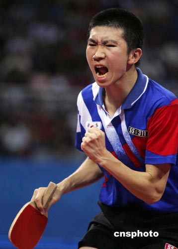在昨天的半決賽中,王皓淘汰了隊(duì)友王勵(lì)勤,而柳承敏則擊敗瑞典老將瓦爾德內(nèi)爾,攜手闖入決賽。在此前的交鋒中,王皓保持著絕對(duì)的上風(fēng)。不過,今天的比賽在王皓得到前兩分后,柳承敏利用自己兇狠的打法迫使王皓失誤連連,連得八分將比分反超,并以十一比三拿下第一局。