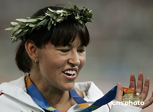 圖為加拿大選手貝蒂克勒克(CHANTAL PETITCLERC)獲得奧運(yùn)會(huì)女子800米輪椅冠軍后展現(xiàn)金牌的鏡頭。