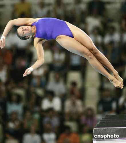 圖為女子十米跳臺比賽中,加拿大選手MYRIAM BOILEAU的精彩表現(xiàn)。