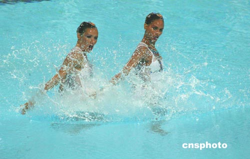 圖:美國(guó)隊(duì)的雙人花樣游泳 (2004-08-25)
