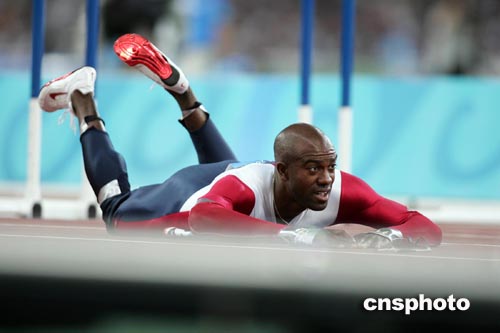 中新社雅典八月二十六日電 二十五日晚,世界男子一百一十米跨欄名將、美國選手阿蘭·約翰遜沒能像往常一樣第一個昂首沖過終點,而是沮喪地趴在跑道上,看著對手跑過了終點。