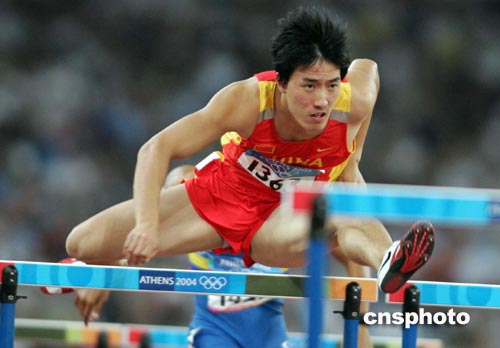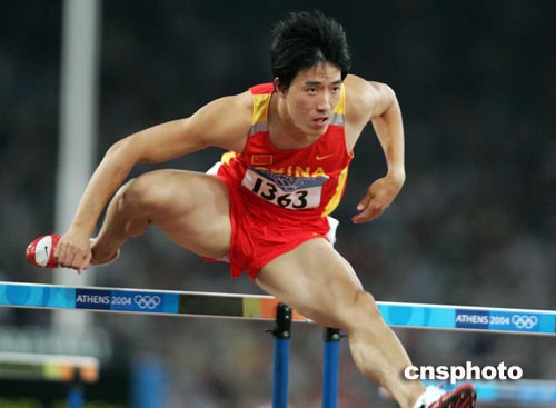 當(dāng)?shù)貢r間八月二十五日晚,在雅典奧運會田徑男子一百一十米跨欄第二輪比賽中,中國選手劉翔順利地以十三秒二六的成績獲得小組第一,進(jìn)入半決賽。中新社記者:毛建軍