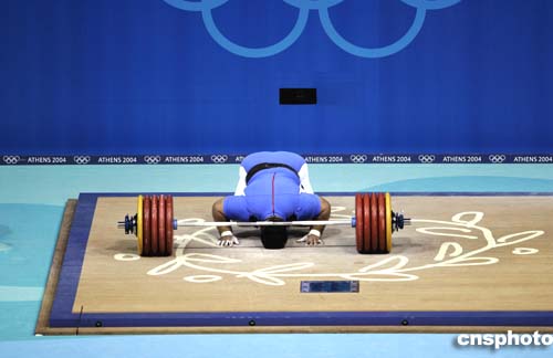 圖為伊朗選手Hossein Reza Zadeh舉起263.5公斤的重量,獲得男子105公斤以上級舉重冠軍。