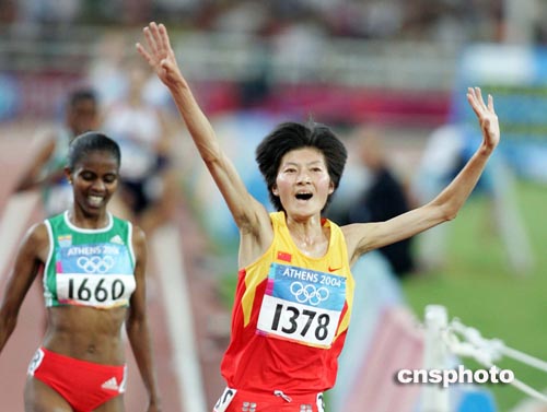 中新網(wǎng)8月28日電 二十歲的中國(guó)女選手邢慧娜在剛剛結(jié)束的雅典奧運(yùn)會(huì)女子一萬(wàn)米決賽中,突破非洲強(qiáng)手的“包圍”,勇奪金牌。
