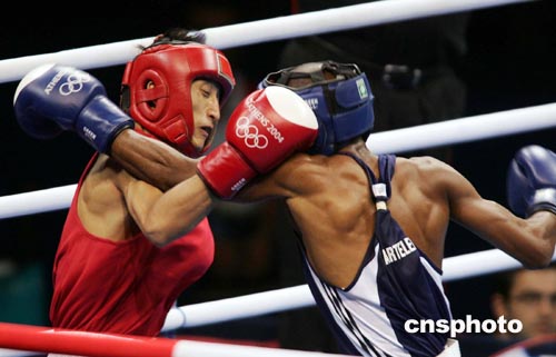 當(dāng)?shù)貢r間8月27日,中國選手鄒市明(左)在奧運會拳擊男子48公斤級半決賽中,負(fù)于古巴強手揚·巴特雷米,無緣決賽。由于奧運會拳擊比賽不再進行三四名的爭奪,因此鄒市明已經(jīng)獲得銅牌。這是中國拳手在奧運會上歷史性的突破,中國拳手此前在奧運會上從未進入過前4名。中新社記者:毛建軍