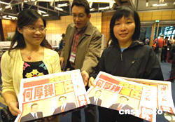 澳門特別行政區(qū)第二任行政長官選舉,二十九日在澳門舉行,何厚鏵以二百九十六票高票當(dāng)選,澳門主流媒體實(shí)時出號外慶祝。作者:梁永強(qiáng)