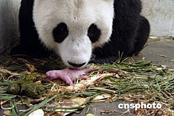 據了解,今年八月剛滿五歲的“華美”一九九九年出生于美國圣地亞哥動物園,今年二月十三日回到四川臥龍定居,它是采用人工授精技術在美國出生并存活的第一只熊貓幼仔。今年四月下旬,已是個“大姑娘”的“華美”發(fā)情后,專家們特地為“華美”找了個“如意郎君”大熊貓“靈靈”。五月二日,這兩只大熊貓成功地實現了本交。為增加“華美”受孕的成功機率,科研人員在本交后的幾天里又對她進行了四次人工授精。“華美”終于成功懷孕產仔。