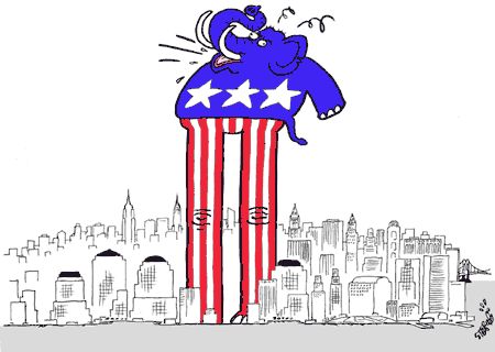 中新網(wǎng)9月4日電 美國(guó)民主黨與共和黨的總統(tǒng)競(jìng)選之戰(zhàn),被稱為“驢象之爭(zhēng)”。美共和黨在紐約操辦了歷時(shí)4天的全國(guó)代表大會(huì),現(xiàn)任總統(tǒng)布什接受了黨內(nèi)總統(tǒng)候選人提名。共和黨借大會(huì)造勢(shì)的努力頗見成效,美《時(shí)代》周刊的最新民調(diào)顯示,布什的民眾支持率已明顯領(lǐng)先于民主黨總統(tǒng)候選人克里,可謂“象”氣沖天。