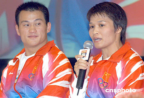 國家奧運金牌代表團(tuán)9月8日在香港大學(xué)陸佑堂與學(xué)生真情對話,女子柔道52公斤級金牌得主冼東妹細(xì)訴奪金歷程,身旁為舉重69公斤級金牌得主張國政在旁細(xì)心聆聽。作者:鄧慶樂