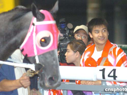 國(guó)家奧運(yùn)金牌運(yùn)動(dòng)員代表團(tuán)9月8日晚在香港跑馬地馬場(chǎng)參觀,“跳水王子”田亮于馬匹亮相圈觀看出賽馬匹。作者:趙振清