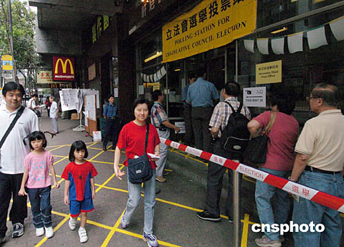 九月十二日,香港舉行2004立法會選舉投票,香港市民在投票站踴躍進行投票。