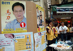 香港9月12日舉行2004年立法會選舉投票日,各候選人在各選區(qū)出動助選團拉票,作最后沖刺。作者:洪少葵