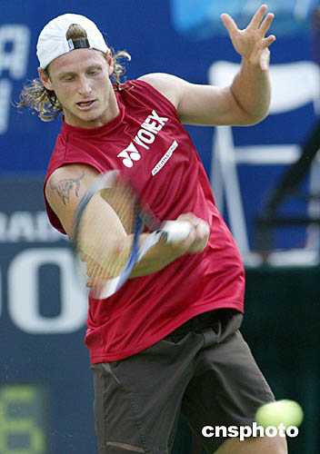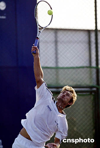 九月十二日,網(wǎng)球超級(jí)巨星費(fèi)雷羅在北京網(wǎng)球中心的外場(chǎng)進(jìn)行訓(xùn)練,為即將開始的中國網(wǎng)球公開賽正選賽作準(zhǔn)備。