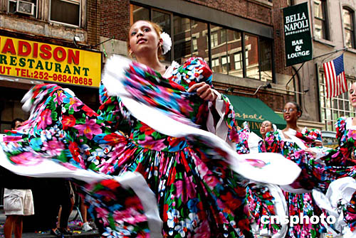 當(dāng)?shù)貢r間九月十二日,紐約曼哈頓舉行一年一度的國際移民文化大游行。國際移民基金會一九八六年的發(fā)起這個游行的目的是紀(jì)念自由女神像豎立一百周年,現(xiàn)在則已經(jīng)發(fā)展成為一年一度的展示移民對美國多元文化貢獻的舞臺。作者:趙海燕