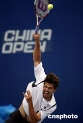 九月十四日,在北京網(wǎng)球中心中央球場舉行的中國網(wǎng)球公開賽男子單打比賽中,美國網(wǎng)球選手丹特以二比零的比分戰(zhàn)勝澳大利亞選手盧克扎克,順利晉級下一輪比賽。圖為丹特在比賽中。中新社記者:盛佳鵬